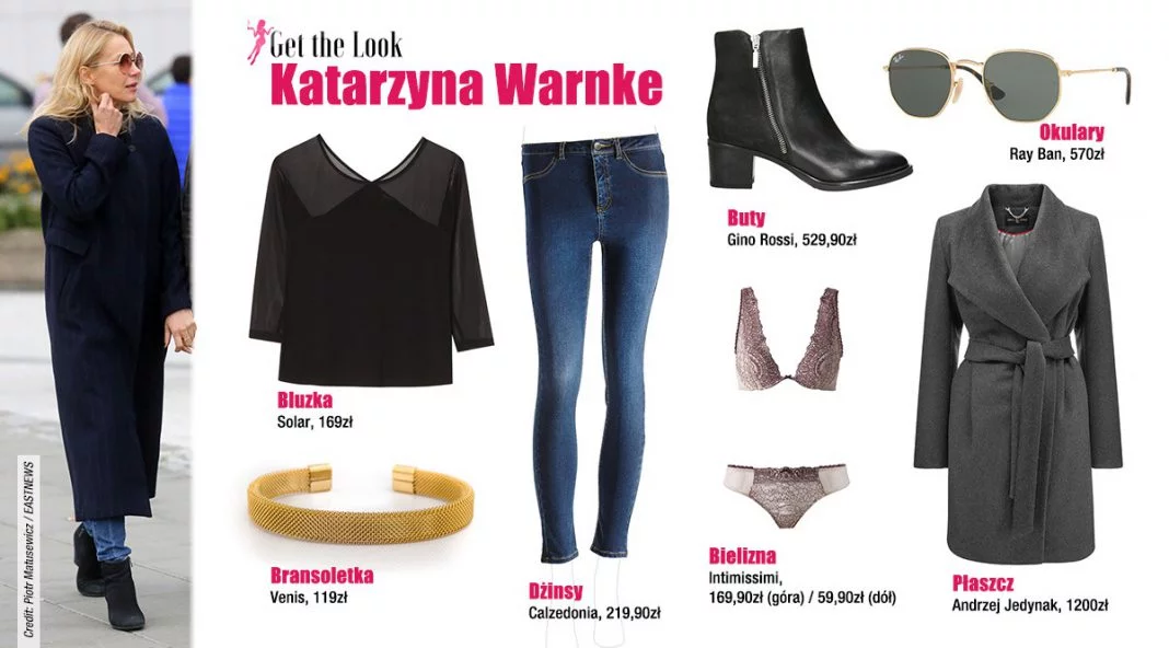 Płaszcz – Andrzej Jedynak – 1200zł | Dżinsy – Calzedonia – 219,90zł | Bluzka – Solar – 169zł | Buty – Gino Rossi – 529,90zł | Okulary – Ray Ban – 570zł | Bransoletka – Venis – 119zł | Stanik – Intimissimi – 169,90zł | Majtki – Intimissimi – 59,90zł
